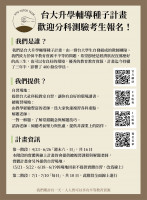 以下連結是台大升學輔導種子計畫的官網、粉專與報名表單,有興趣之同學自行運用。
