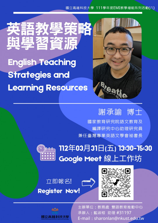 員兼任臺灣專業英語文學會秘書長 謝承諭 博士